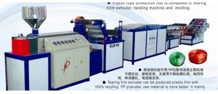 撕裂膜機組可用聚丙烯再生顆粒做平膜或網狀撕裂膜,主要用于撕裂捆扎繩、編網制繩、啤酒捆扎、電纜填充等。